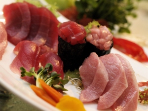 생선을 껍질만 구운 후 얼음에 담구어 얇게 썰어 놓은 참치 다다끼와 참치를 양념한 후 초밥 위에 참치와 성게알, 연어알, 날치알 초생강을 곁들여 먹는 참치 돈부리와 초밥도 별미이다.