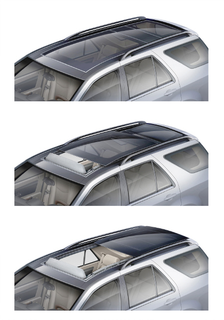 실내에서 가장 눈에 띄는 것은 ‘울트라 뷰’다. 차 위에서 내려다 보면 지붕 대부분이 유리로 덮여있는 구조인데 루프를 열면 1열은 물론 2열에서도 하늘을 직접 느낄 수 있고, 3열에선 유리를 통해 하늘을 올려다 볼 수 있다. 따라서, 오픈카는 아니지만 오픈카의 기분을 낼 수 있어 만족스럽다.