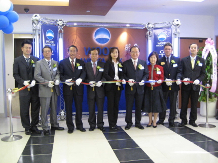 | 우리아메리카은행 LA 플러튼지점 개점을 축하하기 위해 우리은행 문동성 부행장(왼쪽에서 네 번째)과 스티브베리부에나팍 시장 및 유재승 우리아메리카은행장, 최경아 지점장이 고객대표 등과 테이프 컷팅식을 하고 있다. | ||