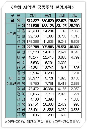 [프라임경제]올해 공동주택 51만7000가구가 공급될 것으로 보인다. 수도권에만 24만1000가구에 달한다.