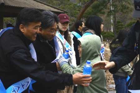 해태음료㈜는 산속의 맑은 산소 처럼 시원하고 투명한 경영을 약속하는 뜻에서 ‘마시는 산소수’를 직접 등산객에게 나누어 준 것이다.