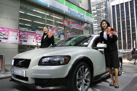 볼보는 한 걸음 더 나아가 지난 7일엔 서울 삼성동 테헤란로의 훼미리마트 편의점 앞에 C30을 전시하고, 이벤트 응모권을 접수 받는 게릴라 이벤트도 벌였다. 전시된 C30이 이곳을 찾은 젊은이들로부터 뜨거운 호응을 받았음은 물론이다.