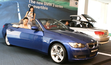 | 12일 서울 방배동 BMW 방배전시장에서 열린 포토행사에서 모델들이 '뉴 3시리즈 컨버터블'을 소개하고 있다. | ||