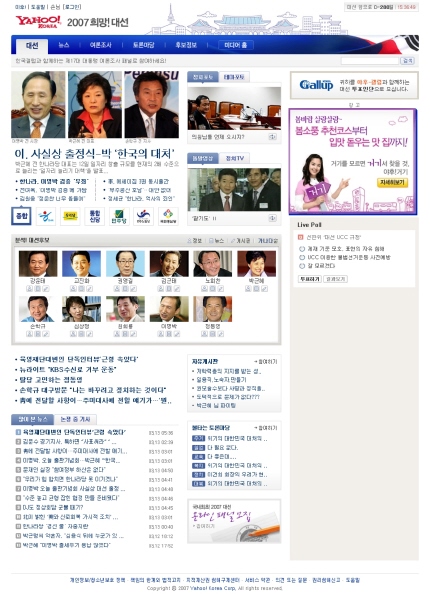 포털 중 가장 먼저 별도의 대선 사이트를 오픈 한 야후! 는 ‘중립, 신속, 정확’을 기본 방침으로 내걸고, 네티즌이 정치에 관심을 갖고 쉽게 참여할 수 있는 온라인 창구가 될 수 있도록 할 계획이다. 사이트 오픈을 기념하여, 박근혜 전 한나라당 대표, 손학규 전 경기도 지사, 이명박 전 서울 시장, 김근태 전 열린우리당 의장, 정동영 전 열린우리당 의장, 민주노동당 권영길 의원 등 주요 정계인사들도 축하 인터뷰 동영상(http://kr.2007korea.yahoo.com/news/?sub=80)을 전해 오는 등 벌써부터 온라인 대선 사이트에 대한 높은 관심을 나타냈다.