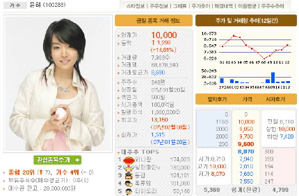 1집 발매 전, 초도 물량의 매진 소식과 대 선배 가수인 김건모의 "음악적으로 뛰어난 역량을 가진 대성할 수 있는 가수"라는 극찬 소식 등으로 가수 윤하는 단번에 상한가 행진 중이다. 상장 당시, 신인임에도 불구하고, 선배 가수들의 인기 못지 않게, 약 600여 명의 주주들이 몰리면서 공모 청약에 성공하면서 이미 2007년 사이버 증시 최대 관심 주로써의 자리매김을 확실히 한 가수 윤하는 현재 비, 보아, 세븐에 이어 가수 부문 4위(10,000원)를 달리고 있다.