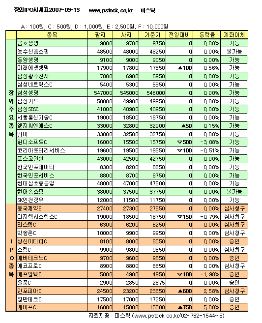 이밖에, 삼성카드 4만9950원, SK인천정유 1만1750원으로 상장예정 종목들은 가격변화가 없었다.