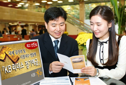 “KB리더스정기예금골드가격연동 7-2호”는 1년제와 6개월제 2종류로 판매되며 골드가격의 상승률에 따라 1년제는 최고연12%, 6개월제는 최고연10%의 수익률이 제공된다.