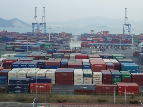 | 수출입 물량 대기 중인 광양항 컨테이너부두. = 박대성 기자 | ||