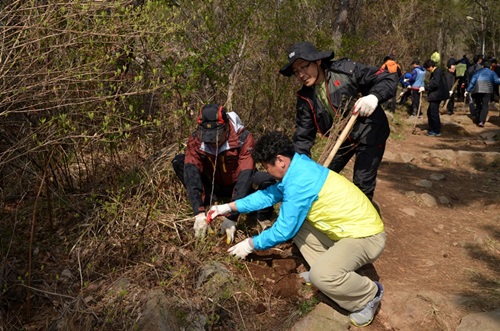 [포토] 광양제철 직원들, 식목일 벚나무 식재