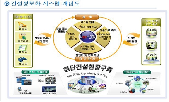 현재까지는 화상회의·웹카메라·PDA·SMS등을 활용해 실시간 현장관리 체계를 운영했으나, 이번에 발표된 계획에는 RFID·USN·AWS 등 U-IT기술을 접목하도록 했다. 따라서 언제, 어디서든지, 누구나 필요한 정보를 바로 얻을 수 있어 현장관리가 수월해 질 전망이다. 유비쿼터스 시범현장도 운영할 계획이다.