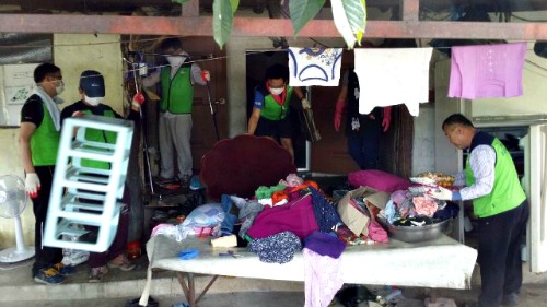 이날 직원들은 방안과 부엌 등 묵은 때와 먼지를 제거하고 집안에 있는 이불과 옷가지 등을 정리정돈 및 세탁활동을 전개했다.