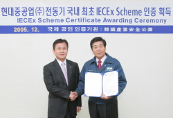 현대중공업은 국제방폭인증 공인기관이자 국제 공인 방폭인증시험소로 지정된 한국산업안전공단에서 국제방폭전기기기 안전기준인 IEC(국제전기기술 위원회)규격에 의한 제품 평가와 함께, 생산업체의 품질관리 능력을 평가하는 품질시스템 심사에서 적합성이 인정되어 인증을 취득하게 됐다.