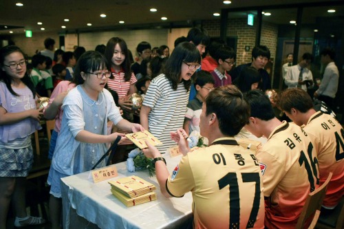 | 펜 사이회 중인 광주FC 선수들 ⓒ광주FC | ||
