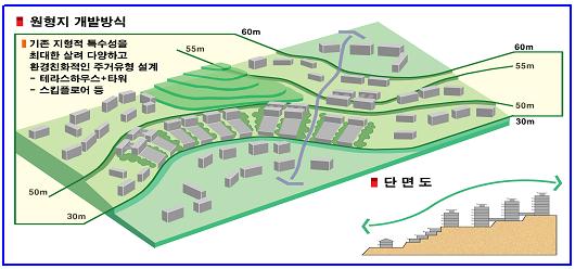 개정된 시행령에서는 기존 택지개발방식을 벗어나 행정도시를 자연친화적이고 창의적으로 개발하기 위해 지난해 12월 28일 행정도시특별법 개정때 새로 도입된 원형지개발제도(사진)의 내용을 구체화 했다.