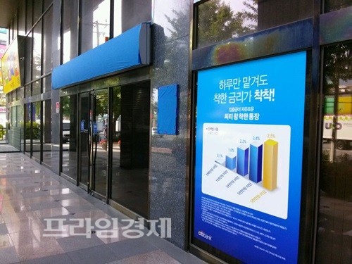 | 미국계 시티은행 순천지점이 23일자로 폐쇄된 뒤 간판이 헝겊에 가려져 있다.= 박대성 기자 | ||