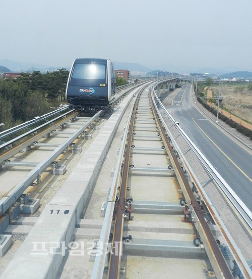 | 순천만정원(박람회장)에서 순천만습지 인근까지 운행되는 신교통수단이 포스코 스카이큐브 운행사진. 이용요금이 1인당 5000원으로 비교적 저렴해 인기를 끌고 있다. = 박대성 기자 | ||