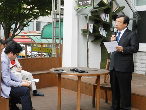 | 이정현 새누리당 후보가 15일 순천시청 앞에서 기자회견을 열고 있다. = 박대성 기자 | ||
