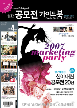[프라임경제]공모전정보 미디어 ‘씽굿’(www.thinkcontest.com)이 2007년 월간 공모전가이드북 4월호를 발간했다. 이번 호는 4월부터 참여할 수 있는 다양한 공모전 정보와 각종 공모전 테마기획을 담았다.