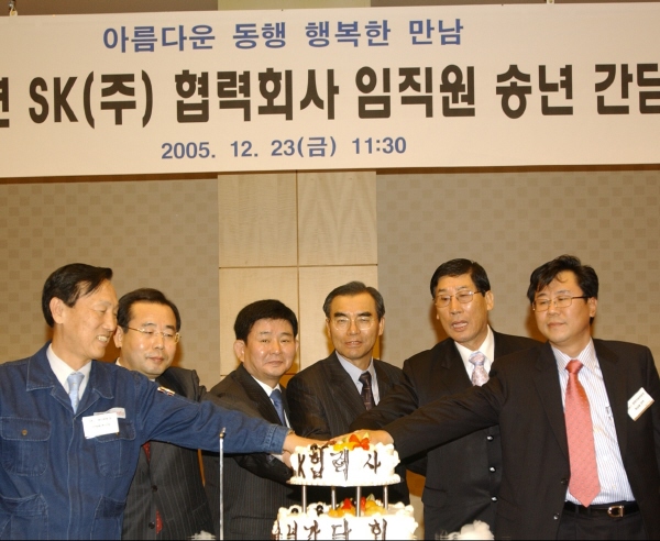 “우리 함께 가요” SK(주)는 23일 울산컴플렉스에서 신헌태 사장과 협력업체 대표들이 함께 송년 간담회를 열고 있다.