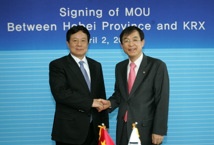 | 한국증권선물거래소는 2일 서울사옥 신관20층 회의실에서 중국 하북성(河北省) 정부산하 금융판공실과 하북성 지역기업의 한국상장을 위한 양해각서(MOU)를 체결하였다. | ||