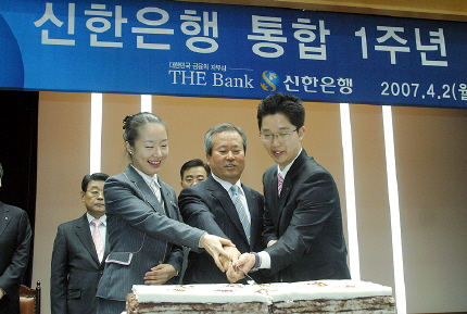 | 신한은행은 4월2일, 서울 태평로 본점 대강당에서 통합 1주년 기념식을 가졌다. |