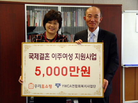 우리홈쇼핑은 3일 양천구 목동에 위치한 본사에서 우리홈쇼핑 정대종 사장, 대한YWCA연합회 박은경 회장과 관계자들이 모인 가운데 ‘YWCA 국제결혼 이주여성 지원사업 후원식’을 갖고 5천만원의 후원금을 전달했다.