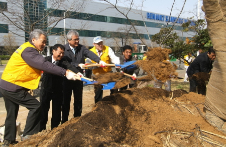 르노삼성자동차(대표 장 마리 위르띠제)는 ‘제62회 식목일’을 앞두고 3일 부산공장 인근 신호마을에서 장 마리 위르띠제 사장을 비롯, 서울 강서구 정성규 부구청장, 신호마을 주민 30여 명 및 임직원 50여명이 참여한 가운데 봄맞이 나무심기 행사를 가졌다.