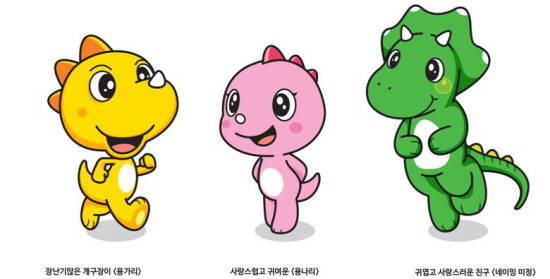 기존 캐릭터가 공룡 원형에 가까운 모습이었다면, 이번 새 캐릭터는 동글동글하고 심플한 모습으로 어린이들의 눈높이에 맞췄다. 따뜻한 감성을 강조하기 위해 기존 파란색에서 오렌지색 계열로 바꾼 점도 눈에 띈다.