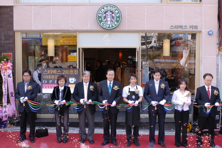 [프라임경제] 스타벅스 코리아( 대표 장 성규)는 5일 오전 10시 30분에 신세게 정용진 부회장등이 참석한 가운데 스타벅스 200호점( 이태원입구점) 오픈 테이프커팅식을 가졌다.