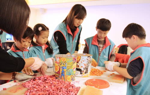 이번 프로그램에 참여한 임직원 및 임직원 가족 40여명은 몽당 크레파스를 색깔별로 모아 가열해 녹이고 다시 굳히는 작업을 통해 새 크레파스를 만들었다. 이렇게 완성된 재생 크레파스는 '옮김'이라는 비정부기구(NGO) 단체를 통해 미술 교육이 제대로 이뤄지지 않는 개발도상국이나 국내 아동 복지 센터 등에 전달될 예정이다.