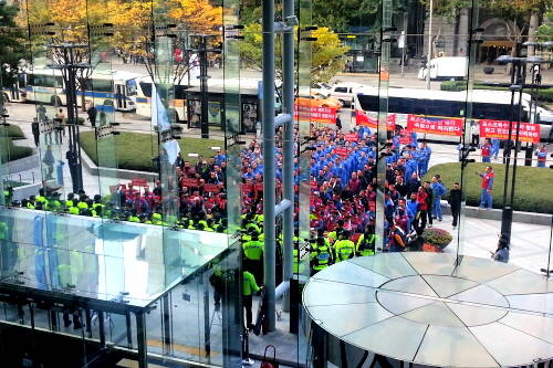 이날 오후 1시께부터 시작된 비대위의 집회는 잠시 소강상태에 접어들었고, 이상철 비대위원장은 오후 2시 20분께 포스코 측과 대화 중이다.
