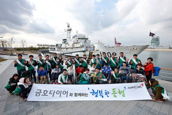 5일 진행된 행사에는 중증자애인 10명을 비롯해 금호타이어 임직원 봉사자 및 전문 사회복지사 25명이 참가했으며, 이들은 아라뱃길 유람선 탑승 및 아라인천여객터미널의 전망대인 아라마루 산책 등 야외 활동 프로그램을 체험했다.