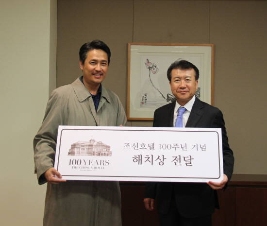 [프라임경제] 조선호텔 100주년을 기념한 해태상 전달식이 6일 오후 2시 성영목 신세계조선호텔 사장, 조각가 최진호 씨가 함께한 가운데 진행됐다.