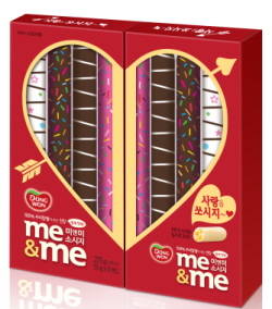 빼빼로데이 특별기획상품은 미앤미 소시지 두 팩을 묶어 가운데 하트 모양으로 포인트를 준 것이 특징이다. 소시지 하나하나를 알록달록한 모양으로 개별 포장해 기념일 이미지를 살렸다.