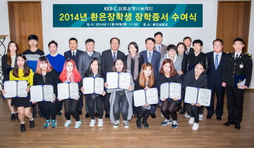 외환은행나눔재단은 7일 저소득층 가정 우수학생 221명을 올해 '환은장학생'으로 선발, 그 중 용인대학교 학생 15명에 대한 장학금 수여식을 6일 용인대학교에서 진행했다고 밝혔다.