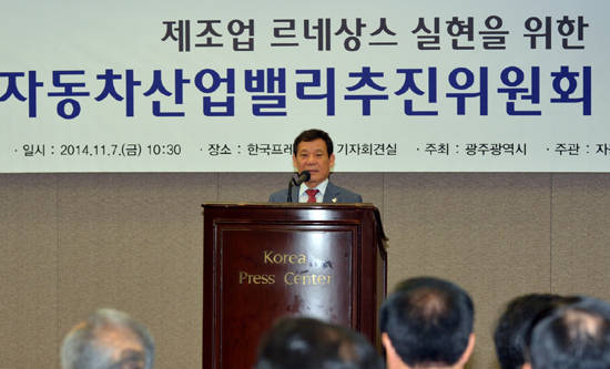 이날 광주시는 자동차산업밸리 조성 추진전략 발표를 통해 제조업 공동화에 따른 국가경제 위기에 대한 대응전략으로 노·사·민·정 등 사회 통합을 통한 기업하기 좋은 환경 조성, 혁신적 공정·물류 시스템 구축을 통한 생산성 향상, 획기적인 지원 등을 통한 완성차 업체의 투자 유치방안 등을 제시했다.