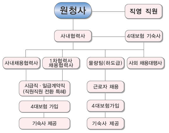 이런 상황에서 협력사들에게 인원을 소개시키기만 하는 채용대행업체들도 살필 필요가 있다. 이들은 채용대행만 진행하는 만큼 기숙사, 4대 보험 가입 등은 인원을 요청한 사내 협력사에서 직접 제공한다.