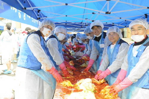 IBK투자증권 사내봉사단체인 '나눔봉사단' 138명은 8일 서울 구로구청에서 지역 내 저소득 가정을 위해 김치 약 4000kg을 담갔다. 김장 비용은 임직원들이 자발적으로 월급의 일부를 기부하는 '끝전 모음'으로 마련됐으며 이날 담근 김치는 구로구 내 저소득 가정 및 사회복지시설에 전달됐다.