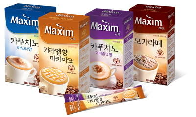 이번에 리뉴얼된 맥심카페 △카푸치노 바닐라향 △카푸치노 헤이즐넛향 △카라멜향 마키아또 △모카라떼는 콜롬비아 원두를 사용해 다채롭고 향긋한 향을 느낄 수 있다.