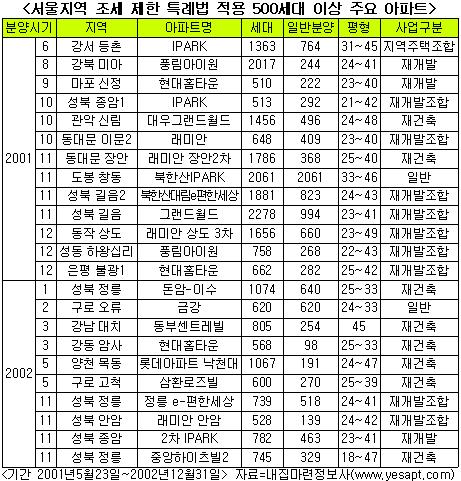 위 <표>에 해당하는 주택을 최초 분양받고 계약한 후 거주해온 다주택자라면, 일몰제 시한인 올해 12월31일 이전에 다른 주택을 팔아 양도세 감면 혜택을 받고, 9월 이후 분양가상한제가 적용되는 유망물량에 1순위로 청약하면 된다.