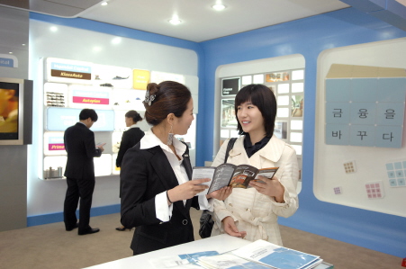 양사의 ‘금융관’은 현대차 전시관 내 부스에 설치된다. 부스 디자인 컨셉은 회사의 CI를 3차원 공간으로 확장한 파이낸스샵(Finance Shop). 지난 해 광화문과 양재 등 5곳에 오픈한 현대캐피탈∙현대카드만의 독특한 원스톱 금융서비스 공간이다. 블루를 기본으로 한 금융관 내부는 대표 자동차 금융상품으로 전시된다.