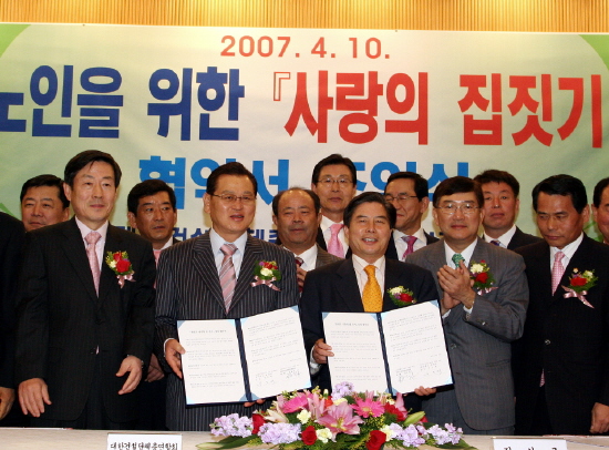 ‘사랑의 집짓기’사업은 건설단체와 건설업체로부터 150억원의 성금을 모아 지자체로부터 제공받은 대지에 총 200세대의 독거노인용 공동주택을 건립해 지자체에 기부채납하는 방식으로 추진된다.