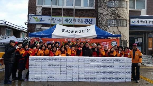 더불어 전남농업기술원의 도움으로 전남 해남에 귀농 후 안착한 농부 협동조합이 절인 배추 500포기를 지원하고 투게더광산 우산동위원회 박병기 위원이 100만원을 내놨다.