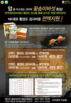 이 프로그램에 참여하는 지원자는 6개월분의 꽃송이버섯과 NK세포 활성도 검사 3회를 통해 자신의 면역 활성도의 가시적 좌표를 볼 수 있게된다.