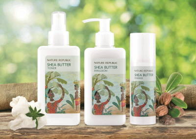 '쉐어버터' 3종은 토너와 에멀젼, 에센스로 구성됐다. 끈적이지 않고 산뜻한 제형으로 사계절 내내 사용 가능하다. 초미세 미스트 타입 '쉐어버터 토너'는 안개처럼 고운 입자가 수분 공급과 함께 얇은 오일막을 형성해 매끄러운 피부로 정돈시킨다.