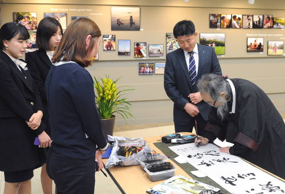 한편 신한생명은 대한민국 10대 서예가 중 유일 현존자인 지당 김홍배 선생을 초청해 오프닝 이벤트를 실시했다. 을미년 새해를 맞이해 방문객과 직원에게 가훈 또는 개인이 원하는 좋은 글귀를 써주는 이벤트다.