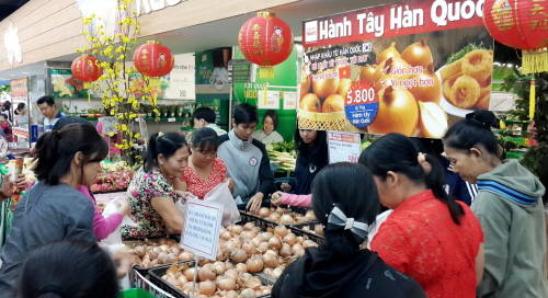 롯데마트는 지난 해 12월, 국내 공급 과잉과 소비 부진으로 가격이 폭락해 재고 소진이 시급한 양파의 판로 확대를 위해, 베트남 10개 점포에 1차로 10톤가량을 수출했으며, 지난 15일부터 1㎏에 5800동(한화 약 290원)에 판매했다.