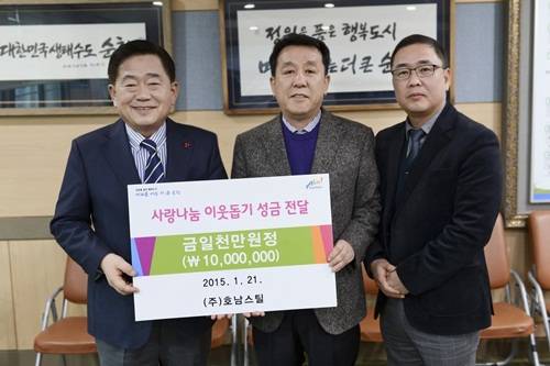김철신 호남스틸 대표는 "큰 금액은 아니지만 어려운 이웃들의 따뜻한 겨울나기를 위해 써 달라"며 "지역사회 이웃들과 함께 나누면서 성장하는 기업이 될 수 있도록 노력하겠다"고 말했다.