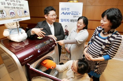 이번 행사는 임신·육아 전문강좌 ‘매터니티스쿨’(www.maternityschool.co.kr)과 공동으로 진행한 것. 알러지 전문의를 초빙하여 갈수록 증가하고 있는 소아 알러지의 원인과 예방법을 알려주고, 옷감 속 세균과 꽃가루, 황사먼지 등 알러지 원인물질을 물로 빨지 않고 공기만으로 간편하게 제거해주는 ‘하우젠 에어워시’를 체험해볼 수 있어 예비엄마들에게 큰 호응을 얻었다.