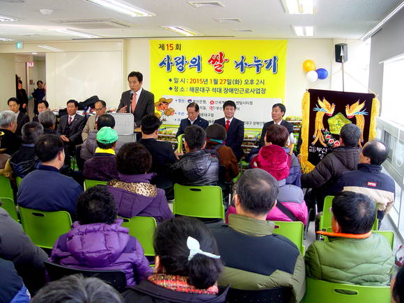 이 행사는 부산은행, 부산디자센터, 신세계백화점 등 기업과 개인 후원자들의 적극적인 참여로, 생활이 어려운 관내 200여명의 장애인들에게 ‘사랑의 쌀’ 한 포대(20kg) 씩을 선물할 수 있었다. 이 자리에 백선기구청장을 비롯 지역구국회의원과 시, 구의원 등도 참석해 마음을 보탰다.